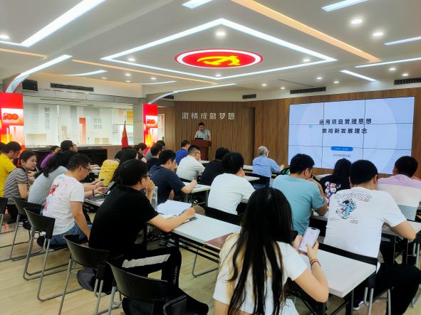 黨課內(nèi)容主要圍繞項目管理在科學(xué)層面和哲學(xué)層面的理解,新發(fā)展理念的內(nèi)容,以及如何運用項目管理思想來貫徹新發(fā)展理念來闡述的。吳家強指出項目科學(xué)層面包括項目的相關(guān)概念、組織影響、項目生命周期、項目管理過程和知識領(lǐng)域,哲學(xué)層面是從項目管理思想延伸至如何構(gòu)建企業(yè)的管理和發(fā)展。要從戰(zhàn)略、運營、人力資源的管理上,以及企業(yè)文化、數(shù)字化建設(shè)上做好工作去推動企業(yè)的發(fā)展。有效的項目管理思想能提升企業(yè)的管理效率,因此要運用好項目管理思想,以新發(fā)展理念引領(lǐng)企業(yè)的高質(zhì)量發(fā)展。